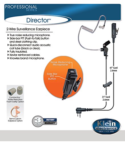 Klein Electronics Director-M1 Director 2-Wire Surveillance Earpiece Kit, for use with Motorola/Blackbox+ Series and Bantam M1/HYT/Relm/TEKK Radios, True Noise Reduction Microphone