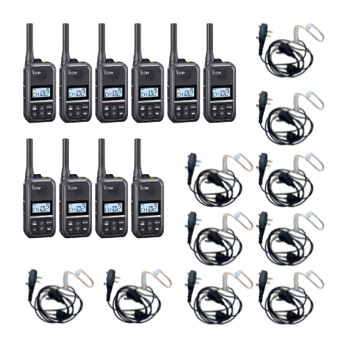 10 Pack of Icom F200 UHF 450-470MHz 16 Channels 2 Watt Radios with SRComm Surveillance Headset