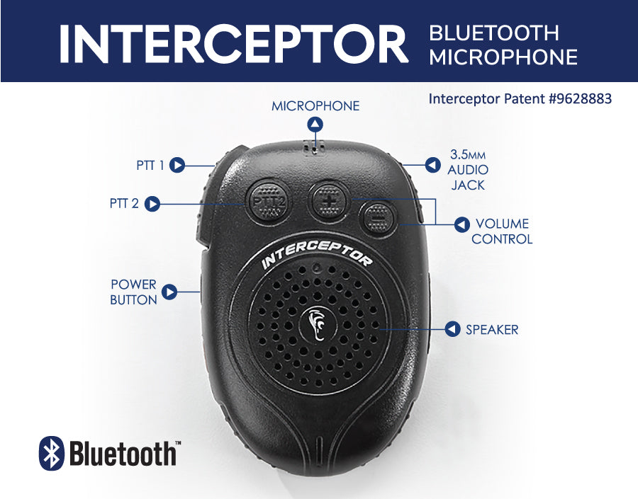 The Interceptor Bluetooth Speaker Microphone is currently available for Android-platform Smartphones and POC Apps.