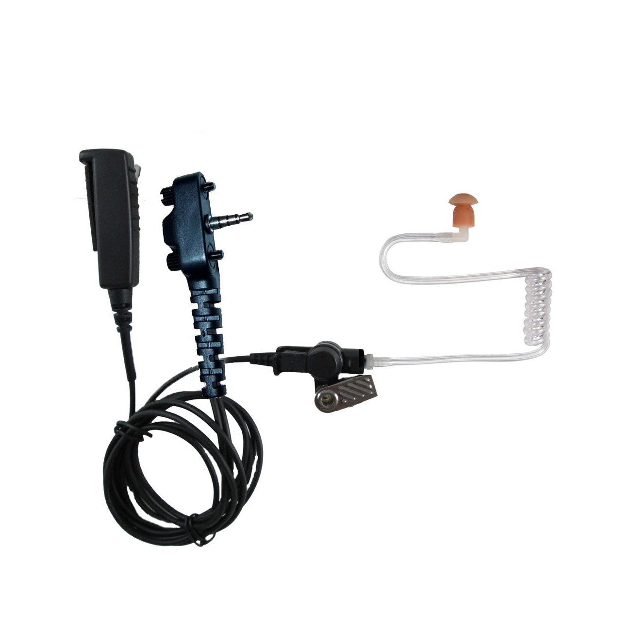 Details: Included Item(s): SPM-2322S - Medium Duty 2-Wire Lapel Microphone with Surveillance Style Acoustic Tube Earphone. For VERTEX radios . Product Description: The SPM-2300 Series a 2-wire style surveillance kit with a clear acoustic tube earphone. The SPM-2300 features a lapel-style microphone with a stealth clothing clip that can either be secured to the user's clothes or dropped down a shirt sleeve. The earphone features PRYME's TWIST CONNECT locking mechanism, which makes it easy to replace or remove the earphone. Rugged lapel mic with surveillance style acoustic tube earphone TWIST CONNECT acoustic tube assembly for hygiene and multiple users Reinforced earphone clip provides cable retention and eliminates strain on earphone. Newly designed mic housing uses high quality transmit capability. Covert PTT clip attaches to lapel or sleeve. Warranty: 1 Year Replacement! Compatible Models: VERTEX radios: VX-130, VX-131, VX-132, VX-160, VX-180, VX-210, VX-210A, VX-230, VX-231, VX-350, VX-351, VX-354, VX-400, VX-410, VX-420, VX-427, VX-450, VX-454, VX-459 Part#: SPM-2322S