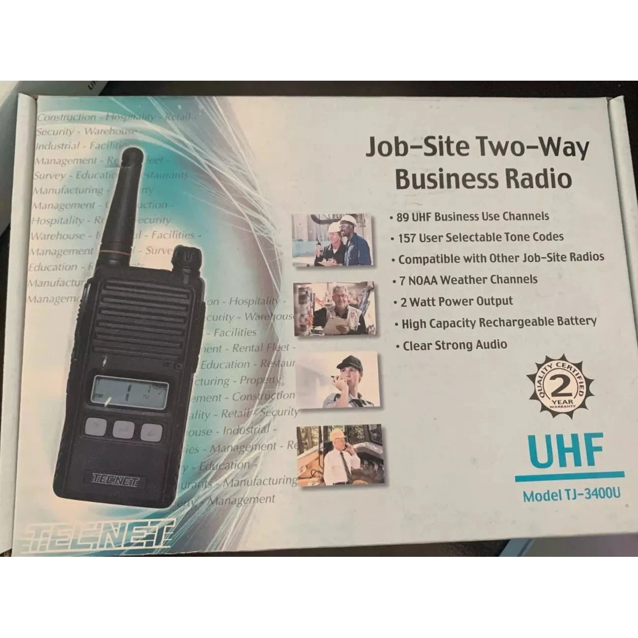 Tecnet TJ-3400U UHF 89 Channel 2 Watt Job-Site NOAA Weather Two-Way Radio