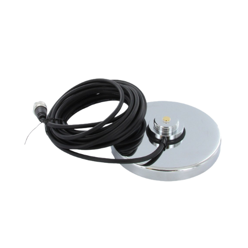 The Tram 1240 is a premium-grade magnet mount solution engineered for high-performance mobile antenna installations. Constructed with a 5-inch double chrome-plated steel base, this mount provides exceptional stability and corrosion resistance. It features a solid brass NMO mounting assembly with a gold contact pin to ensure superior conductivity and minimal signal loss. The integrated PTFE insulator and strain-relieved PL-259 connector further enhance the mount’s durability and electrical performance. With a 17-foot low-loss RG-58A/U coaxial cable, the Tram 1240 offers reliable signal transmission, making it a dependable choice for professional communication setups.